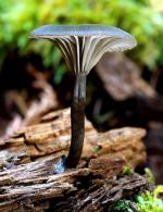 Cap 1.0-3.0 cm broad, convex-depressed to infundibuliform; margin incurved, then decurved; surface translucent-striate, hygrophanous, grey-brown to dingy-brown, fading to lighter shades, glabrous except furfuraceous at the center; context thin, approximately 1.0 mm thick, watery-brown, unchanging; odor and taste mild. |